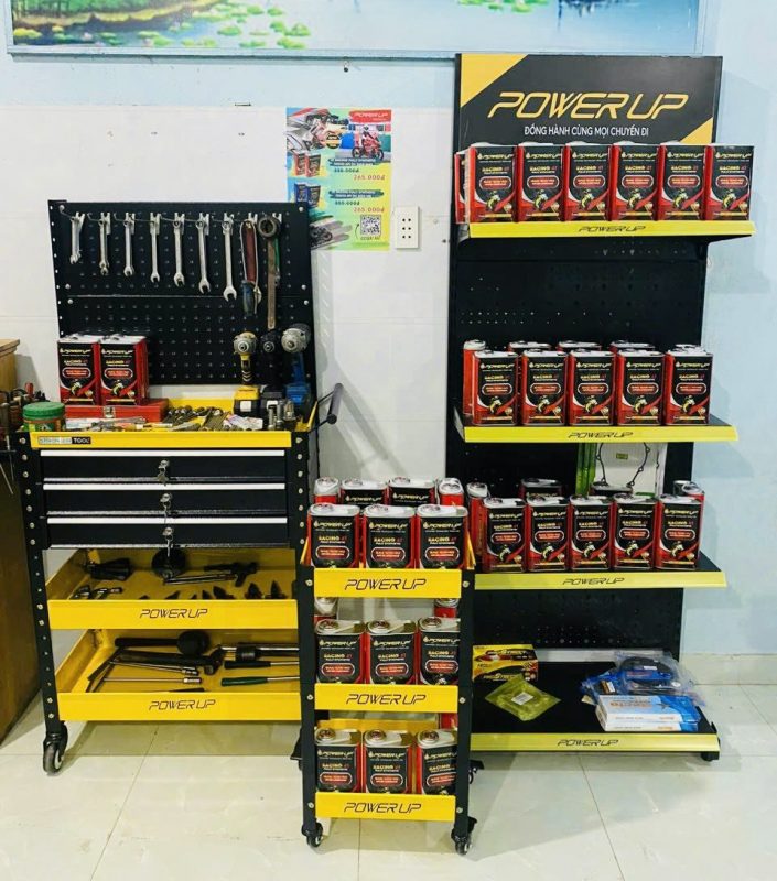 Trong không gian quen thuộc của một tiệm sửa xe, mỗi chi tiết nhỏ đều góp phần tạo nên sự tin tưởng của khách hàng. Kệ nhớt Power Up không chỉ là nơi sắp xếp sản phẩm, mà còn là điểm nhấn giúp tiệm trở nên gọn gàng, chuyên nghiệp và đáng tin cậy hơn….